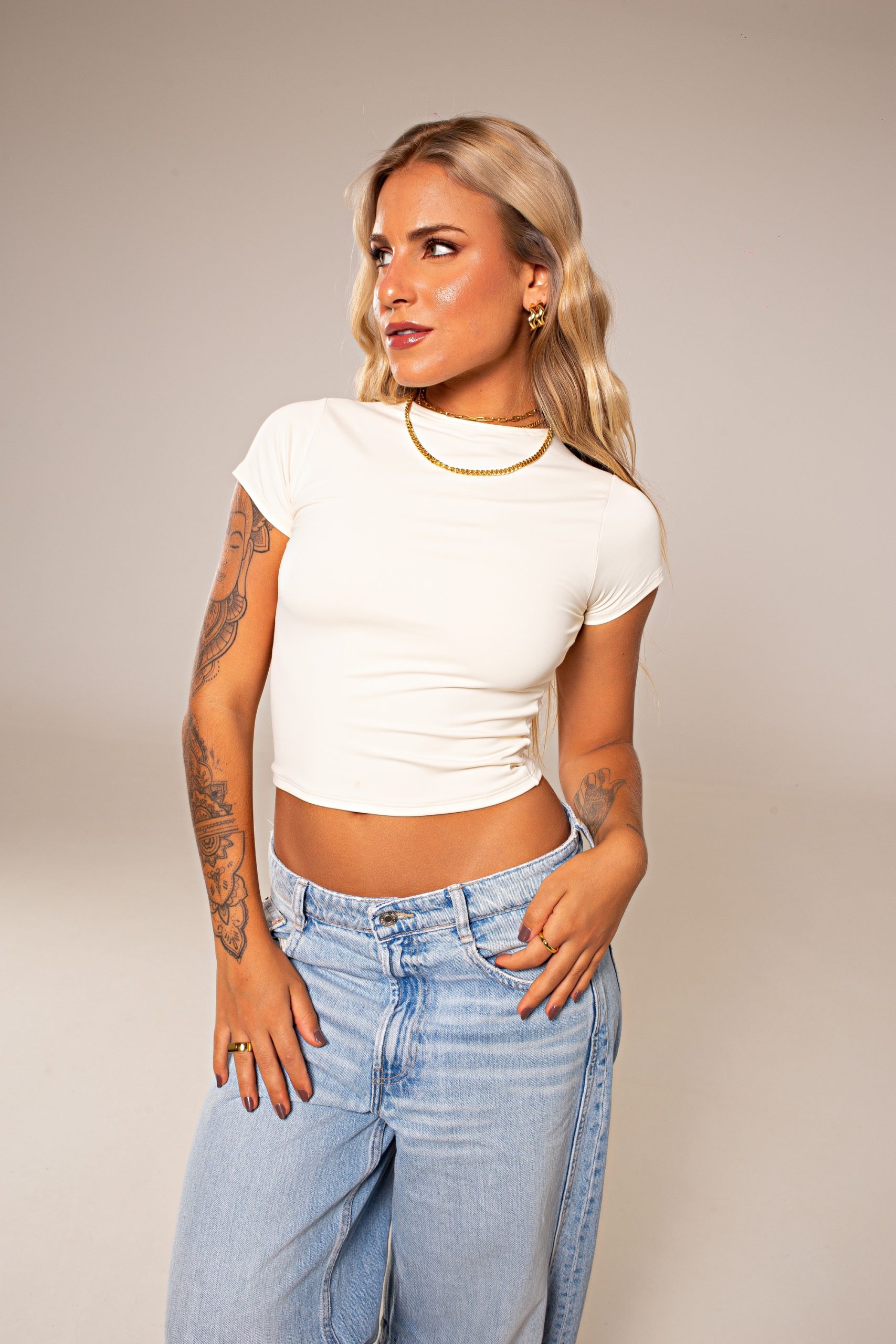 - Material: Tecido Mary: Poliamida com elastano