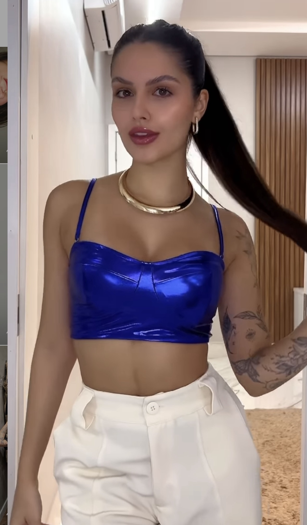 - Cropped em tecido laminado