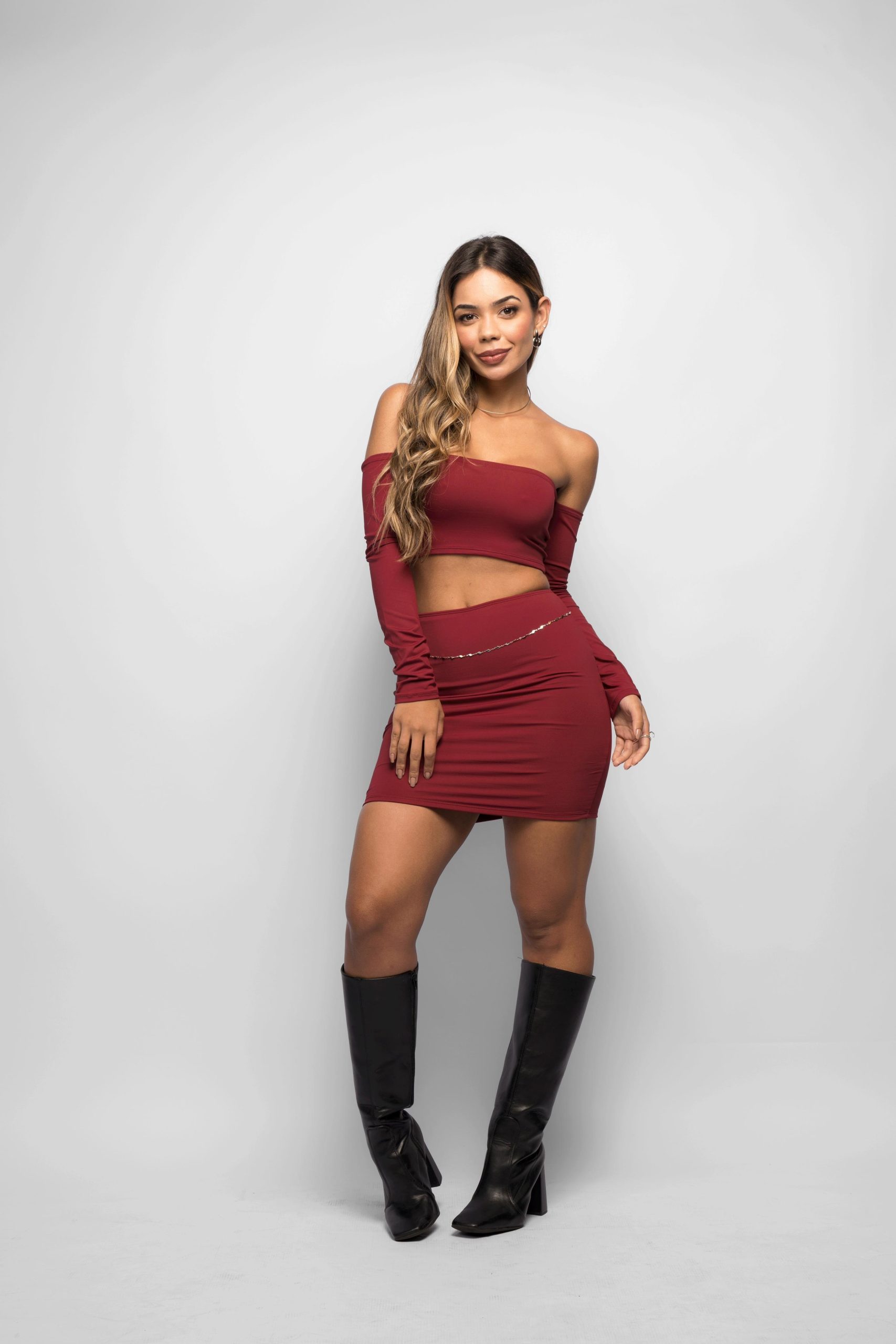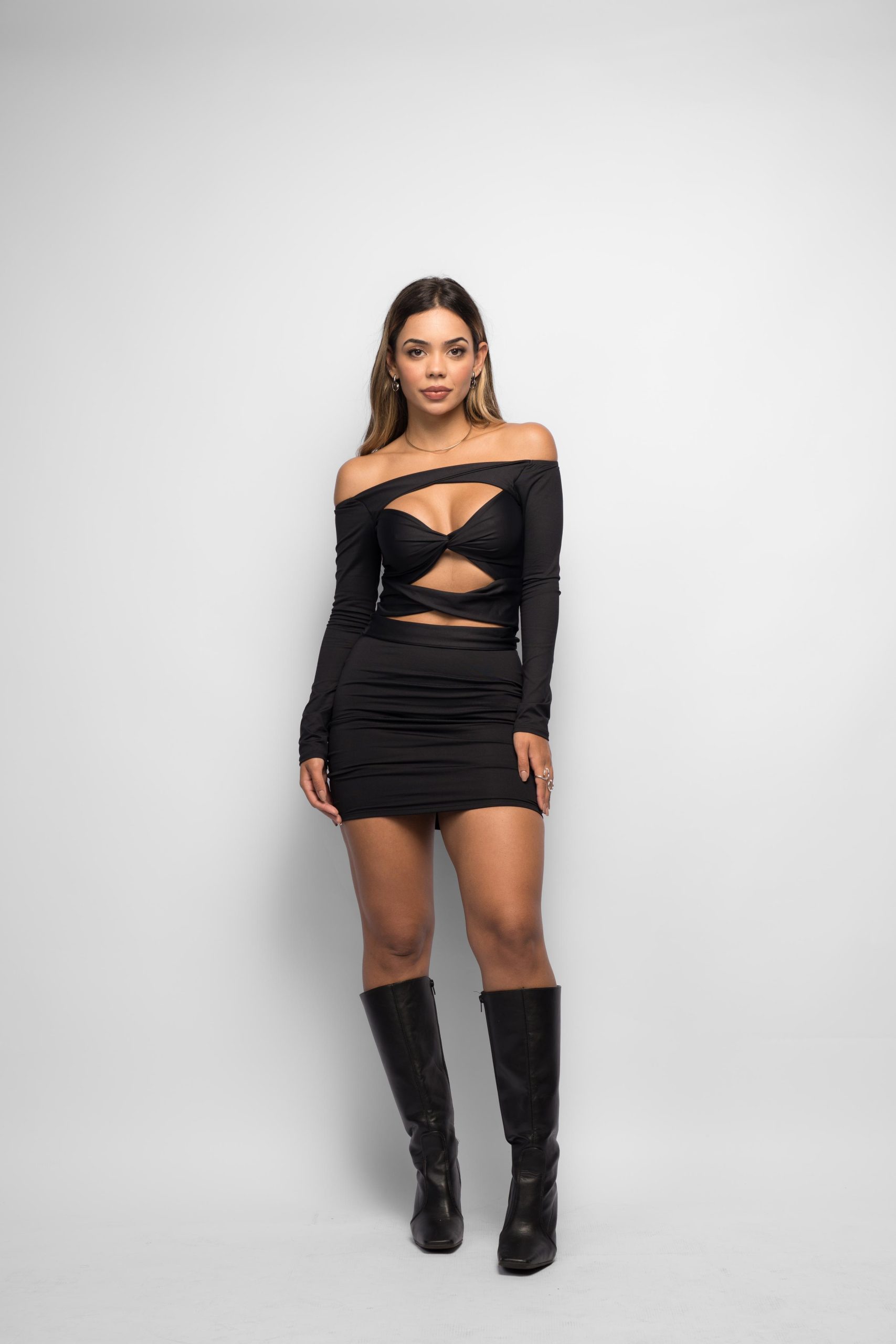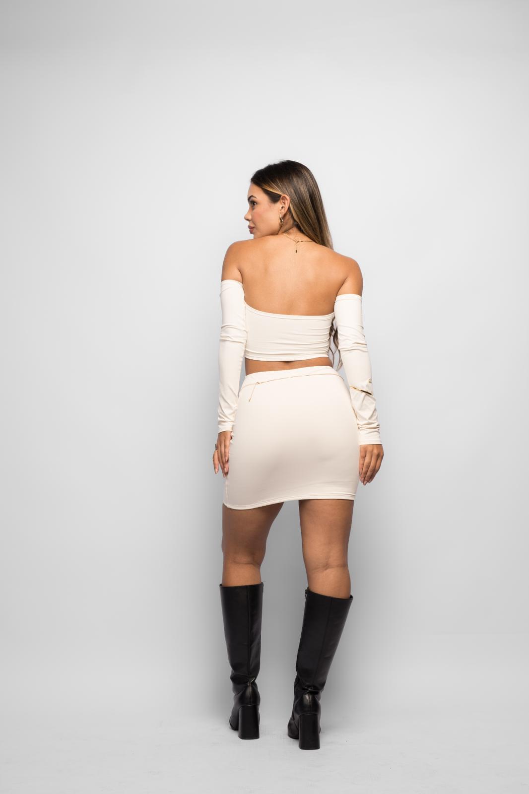 - Saia curta que ajusta ao corpo